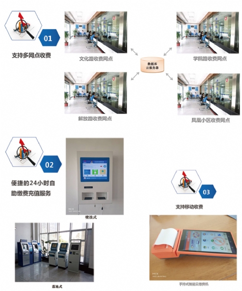 實(shí)現(xiàn)自助繳納水費(fèi)、電費(fèi);支付方式目前支持微信支付,可擴(kuò)展支付寶和銀聯(lián)卡支付;可實(shí)現(xiàn)票 據(jù)打印。產(chǎn)品分為壁掛式、落地式等;可實(shí)現(xiàn)24小時無人值守工作;